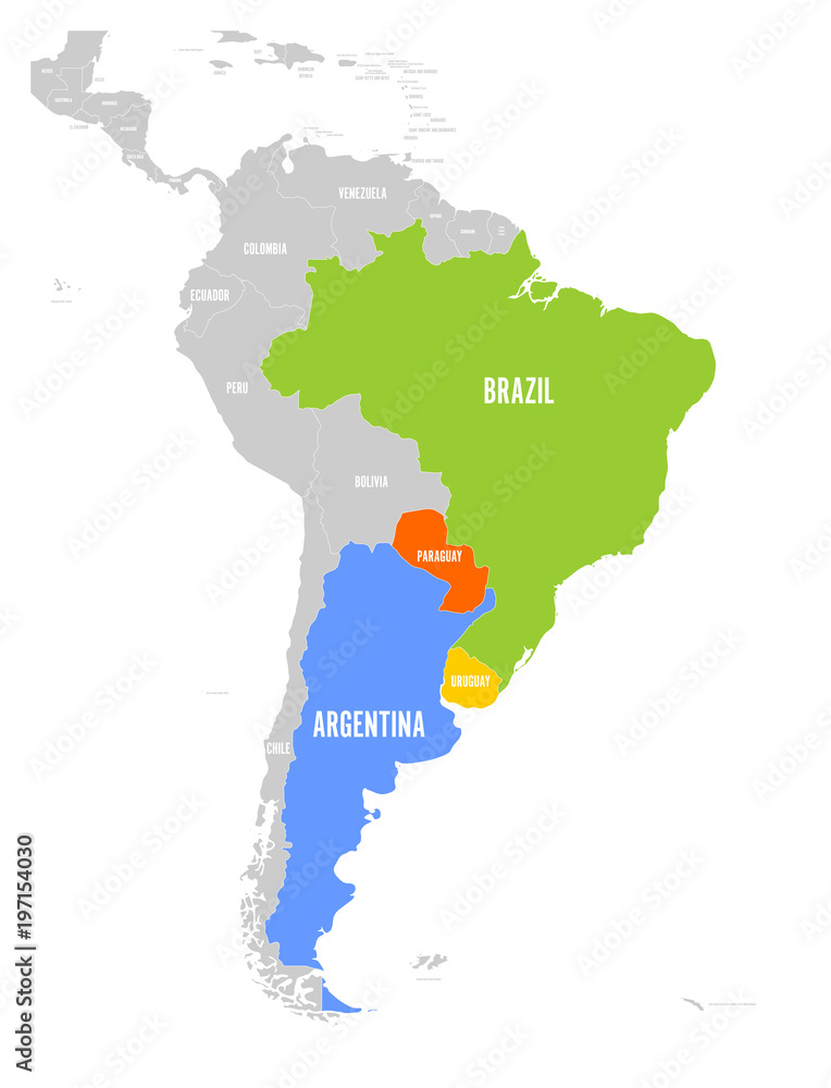 Map of MERCOSUR countires. South american trade association